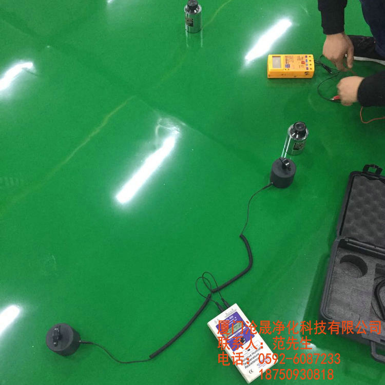 防靜電地坪漆驗收測量前,用紗布將表面擦干凈,然后將室內空調打開,放置電極前先用軟布條擦去地表面所有塵物,電極表面在放置前要用干凈的軟布條粘上異丙醇不少于70%水擦拭干凈。