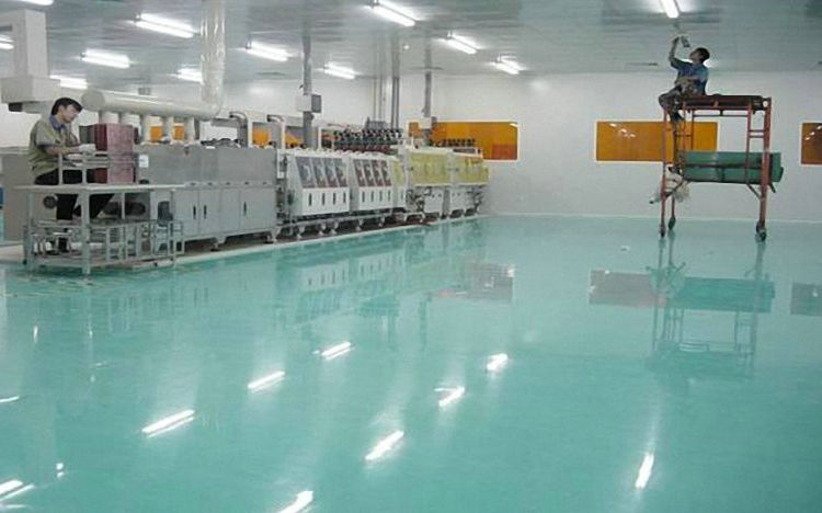 五、環氧地坪漆:附著力強、耐磨、高硬度、耐酸堿、防霉菌、不起塵、防蝕、防水、防銹、表面光亮、美觀、無接縫、維護費用低廉,適用于ISO9001、GMP國際認證及一般標準廠房地坪。