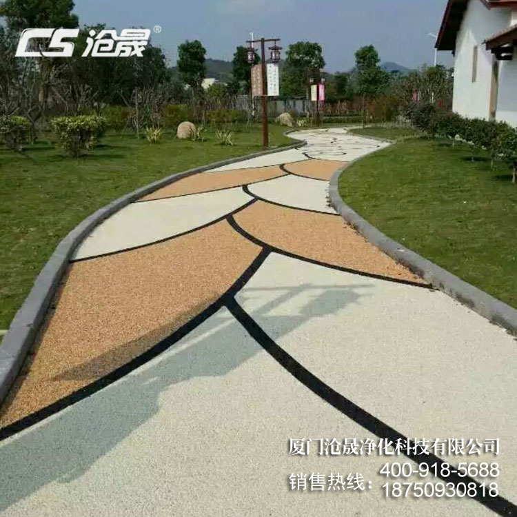 透水路面可以做成各種各樣的顏色,具有良好的透水性能,能夠讓路面積積水快速滲透到地下土壤中。對行人的出行提供了方便,且鋪裝在公園里面,彩色透水路面能夠將濕潤土壤,從而給周邊植物補充水分,增加土壤的透氣性。